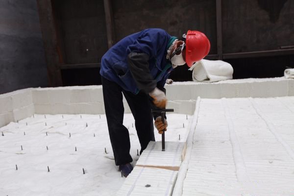 陶瓷纖維模塊并排放置在平臺(tái)之后,安裝圖紙擺放鋼結(jié)構(gòu)后將螺桿與鋼結(jié)構(gòu)焊接牢固即可。