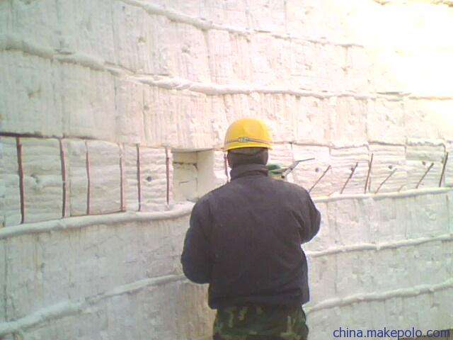 陶瓷纖維模塊經(jīng)高溫烘烤后會(huì)有3%的收縮率,四個(gè)模塊相接的地方就容易出現(xiàn)花心孔,影響爐襯的密封性,因此在采用拼花時(shí)結(jié)構(gòu),應(yīng)在每組模塊相接的地方填塞陶瓷纖維棉。