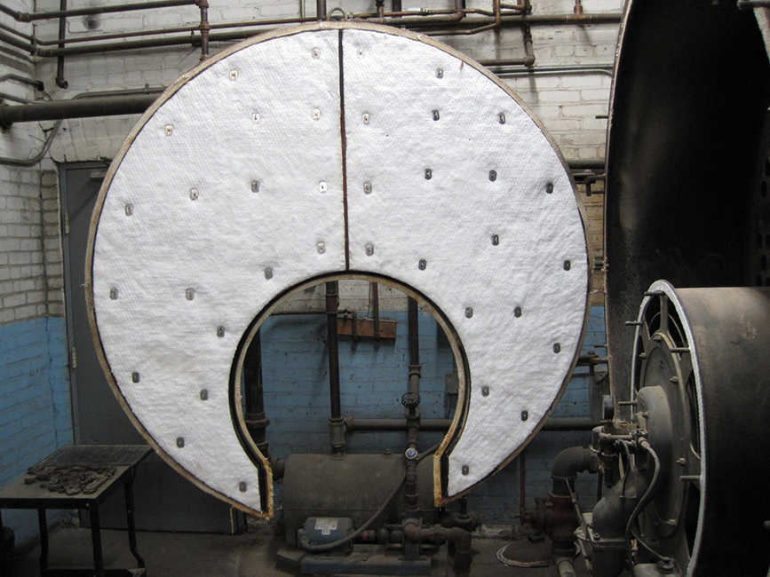 陶瓷纖維模塊安裝完畢后檢查模塊周邊,有縫隙的部位需用陶瓷纖維毯塞嚴實。然后在模塊表面噴涂固化劑,待干燥后才能投入使用。